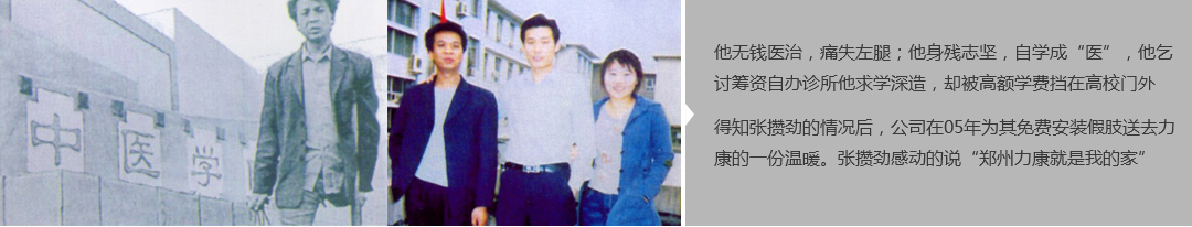 鄭州市力康假肢矯形器有限公司(簡稱力康),是一家專業(yè)從事假肢矯形器的設(shè)計、研發(fā)、制作及裝 配的專業(yè)機(jī)構(gòu)。成立于1992年是河南省唯一一家福利企業(yè)。力康下設(shè)業(yè)務(wù)部、技術(shù)部、住院部、康復(fù) 部、售后服務(wù)部,并配有現(xiàn)代化的裝配車間和功能齊全的訓(xùn)練大廳,為殘疾朋友康復(fù)訓(xùn)練提供了可靠 保障。總經(jīng)理穿戴假肢多年,有著豐富的臨床經(jīng)驗和親身體會;多年來,力康已為全國幾十萬名殘疾 朋友安裝上舒適、美觀、耐用的假肢和矯形器具,使他們更大限度地恢復(fù)了正常的工作和生活。“產(chǎn) 品即人品”的質(zhì)量理念、先進(jìn)的技術(shù)、實惠的價格、完善的售后服務(wù)是力康取勝的法寶……
